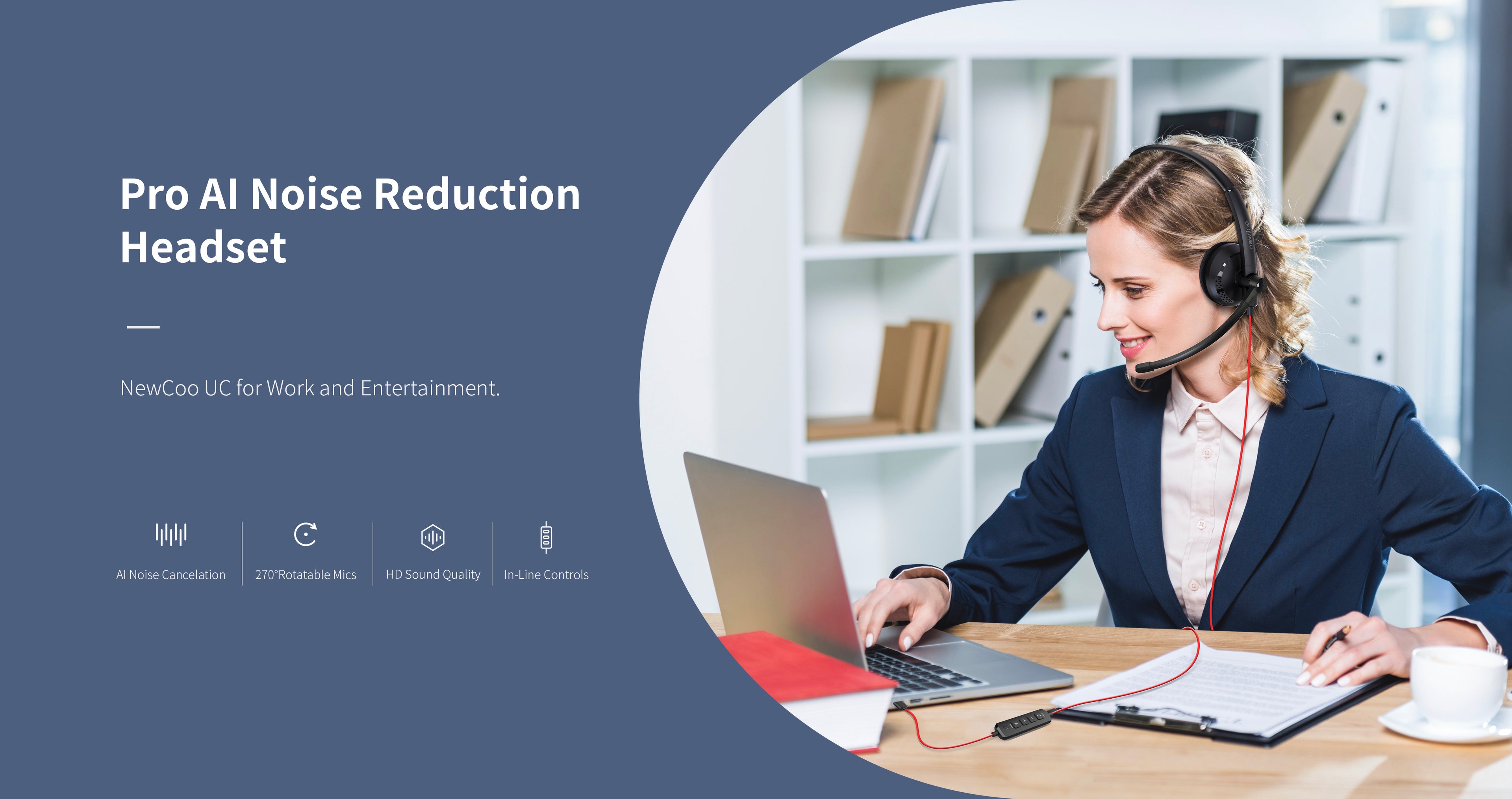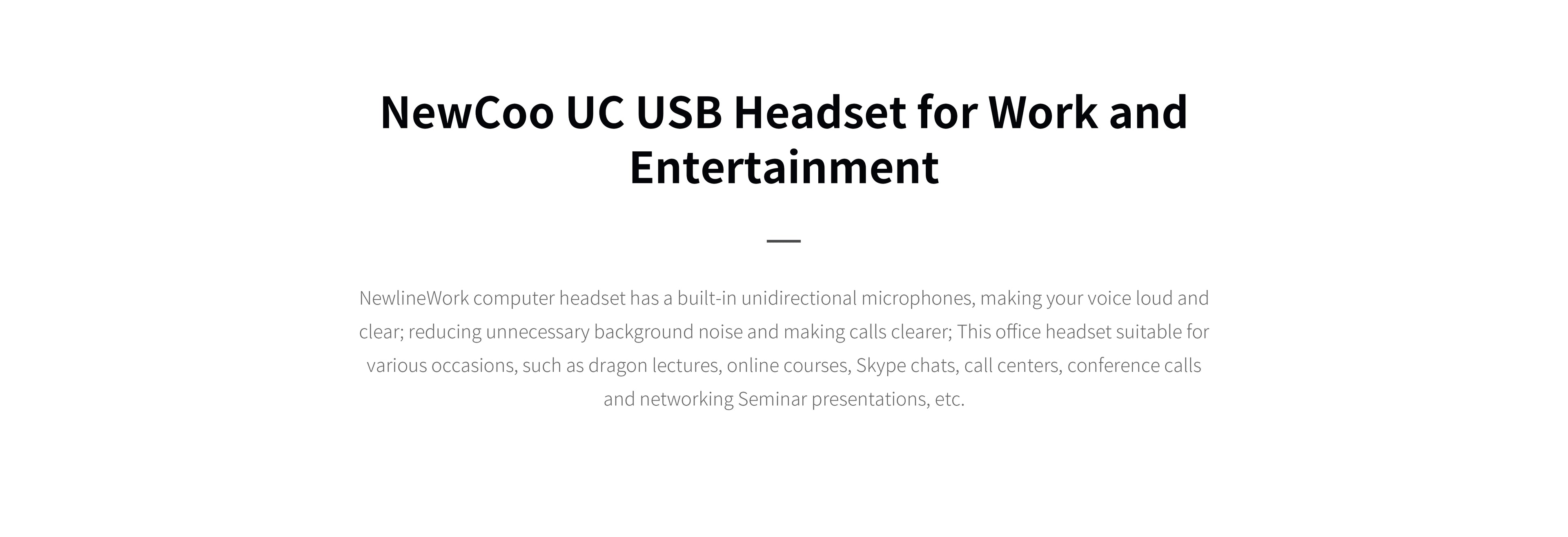- Outstanding Noise Cancelation - NewCoo UC headset has advanced Qualcomm DSP and ENC chips, with pick-up and noise-canceling depth as low as 50 dB.