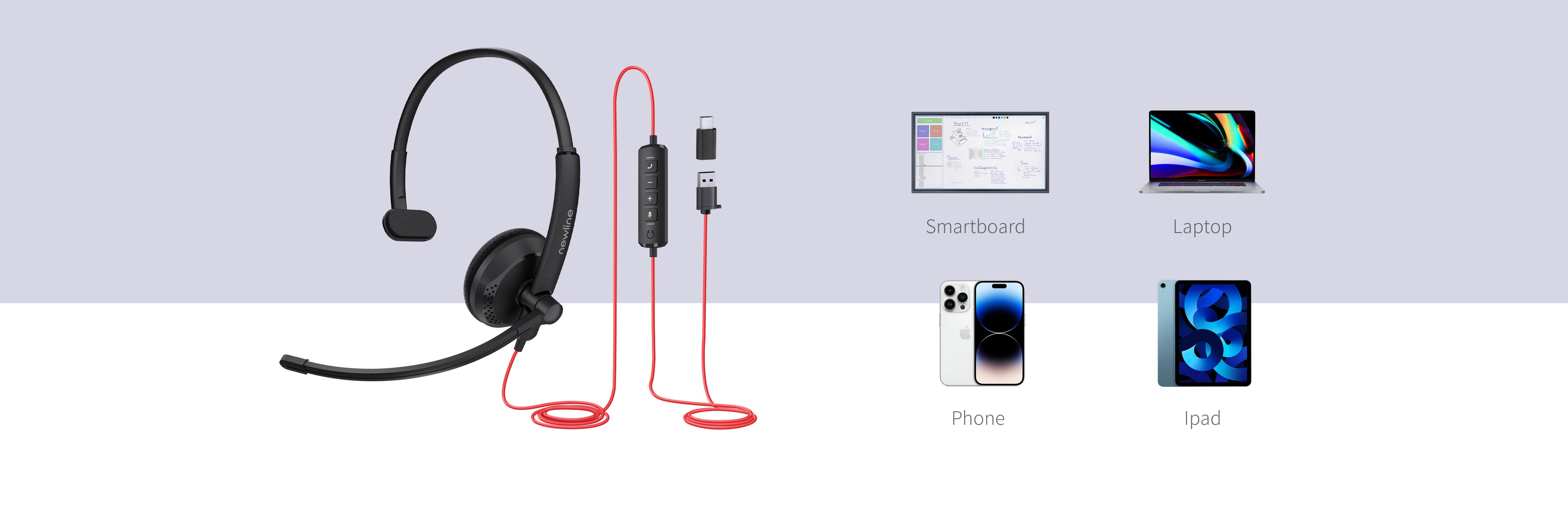 - Outstanding Noise Cancelation - Single ear USB headset is equipped with advanced Qualcomm DSP and ENC chips, improving voice clarity and reproducing the natural human voice.