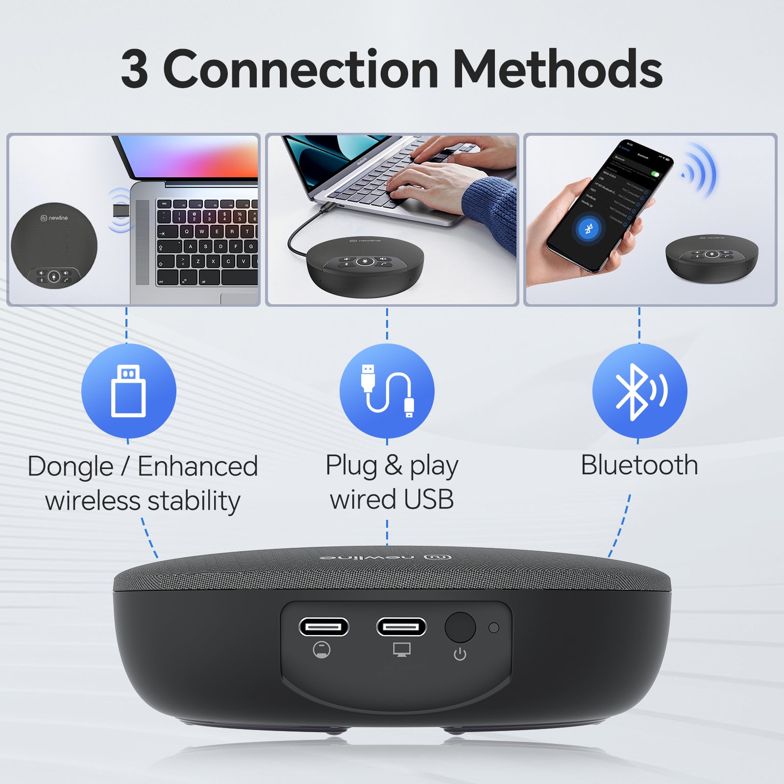 - Multiple connection options: USB & Bluetooth
